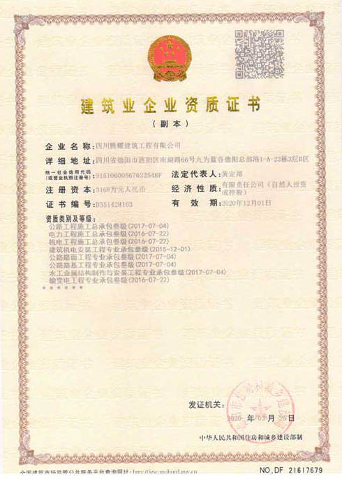 四川騰耀建筑工程有限公司(以下簡稱:四川騰耀)成立于2010年1月,注冊資金1168萬元,員工98人,其中各類注冊工程師62人(次),含高級職稱人員20人中級職稱人員42人,各類評標(biāo)專家15人,既有較強(qiáng)的專業(yè)知識,又有豐富的實(shí)踐經(jīng)驗(yàn);擁有各類設(shè)備200余臺(套)。